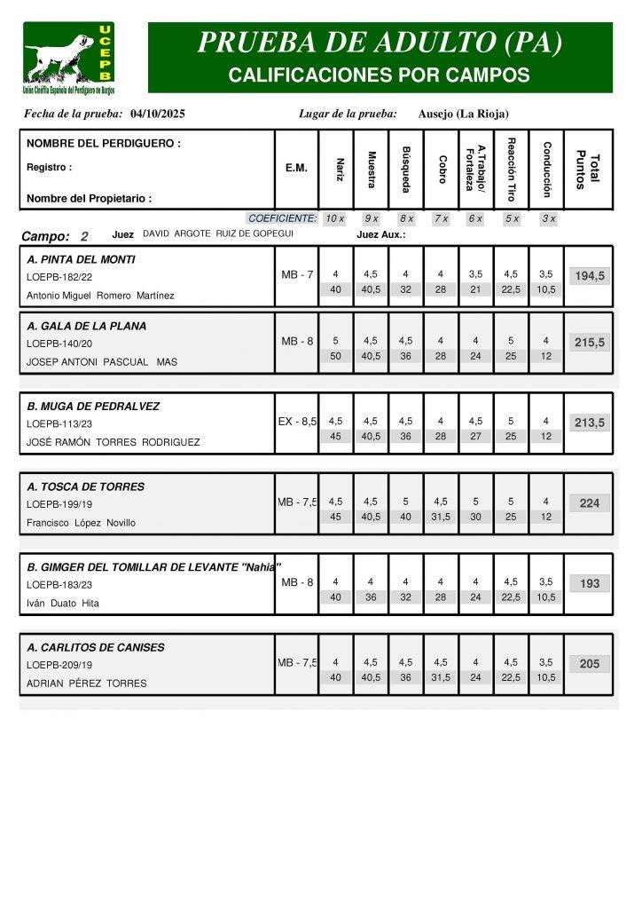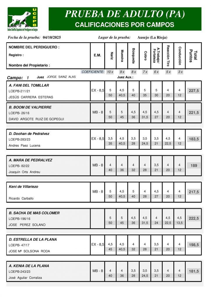 CLASIFICACIONES- Prueba de Otoño de la UCEPB. Ausejo (La Rioja) 4 de octubre de 2025.