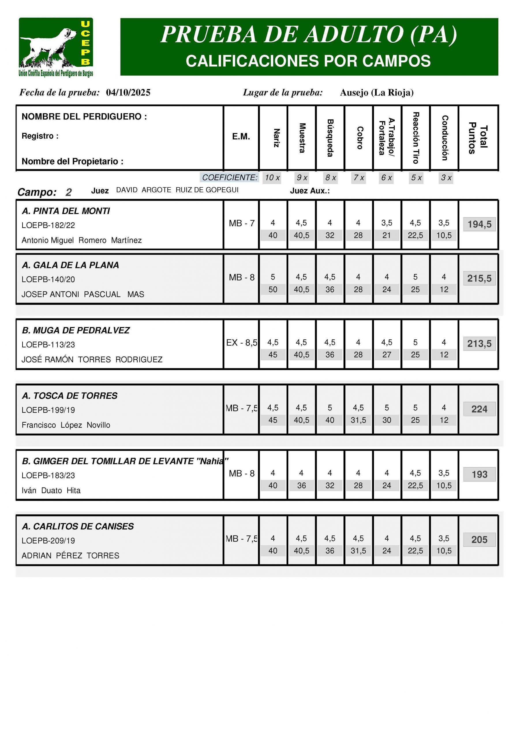 CLASIFICACIONES- Prueba de Otoño de la UCEPB. Ausejo (La Rioja) 4 de octubre de 2025.