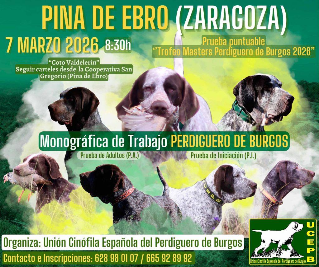 - – y de la Prueba de Adultos (P.A.) para Perdigueros mayores de 18 meses, se realiza sobre perdiz sembrada. Para los Perdigueros inscritos en los registros de la UCEPB, esta prueba será puntuable junto con la de otoño para la obtención del Trofeo Masters Perdiguero de Burgos 2026.